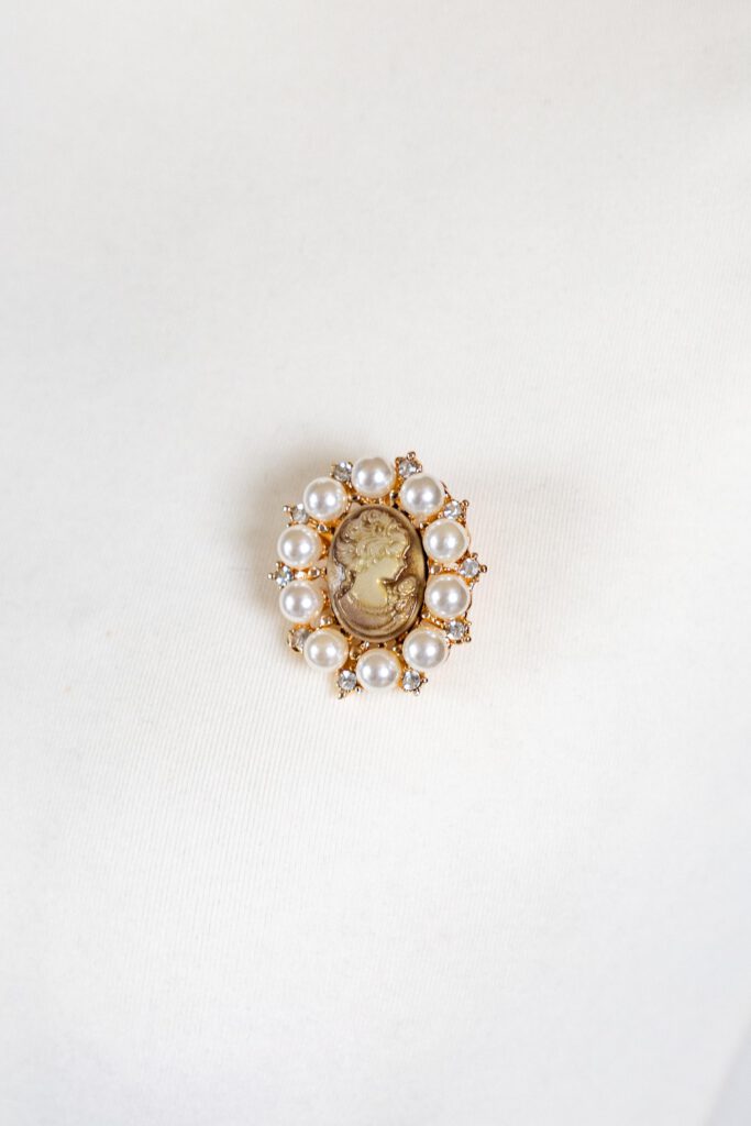 Broschen als kleines Highlight am Outfit bei Fotoshootings.